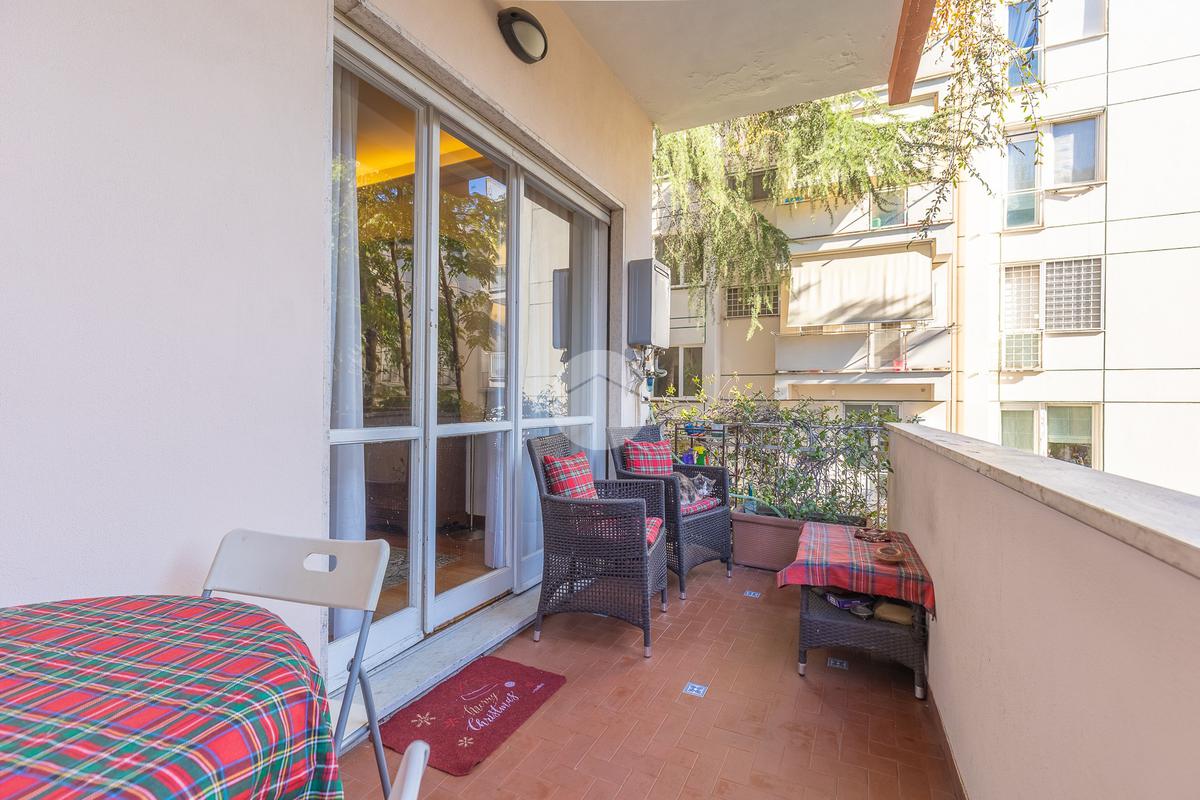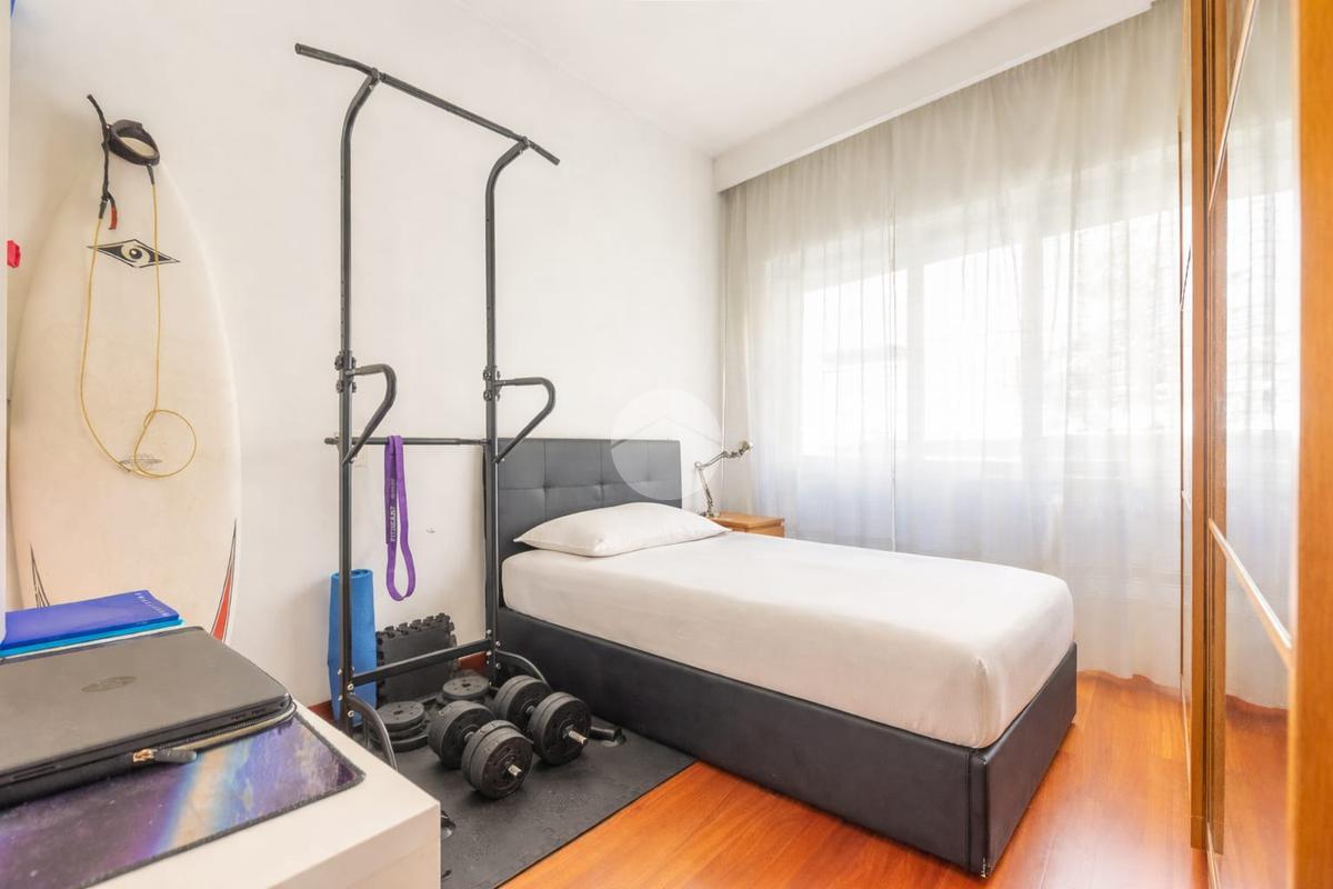 La zona notte comprende tre camere da letto ampie, una con accesso diretto ad un secondo balcone con affaccio esterno riservato, oltre a due bagni finestrati.